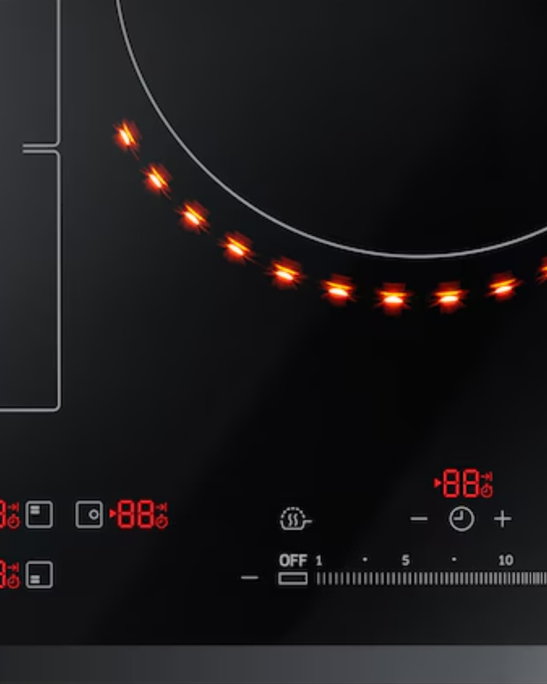 Con Virtual Flame Technology™ podés disfrutar de un control visual intuitivo y ver claramente si el anafé está encendido o apagado. La iluminación LED en frente de una de las zonas de cocción se ilumina como una llama de gas real para mostrar qué tan alto se encuentra.