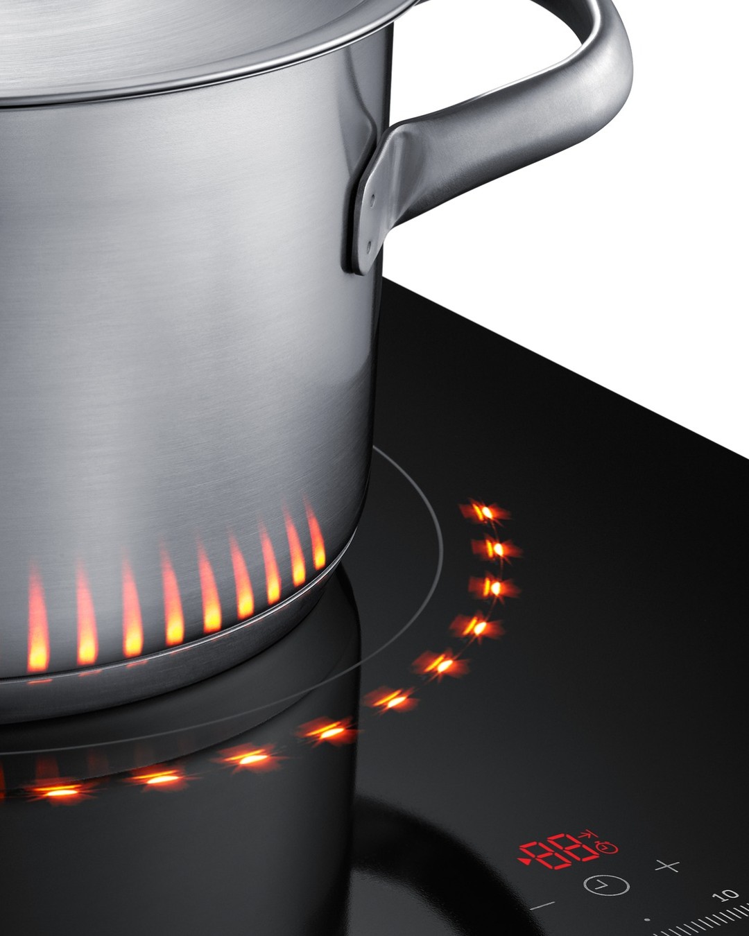Un indicador de calor residual de 2 etapas te permite utilizar de manera segura y eficiente cualquier calor residual. Muestra claramente una h si una zona de cocción está a más de 55 ° C o una H si supera los 70 ° C, pero se apaga cuando es seguro tocar.