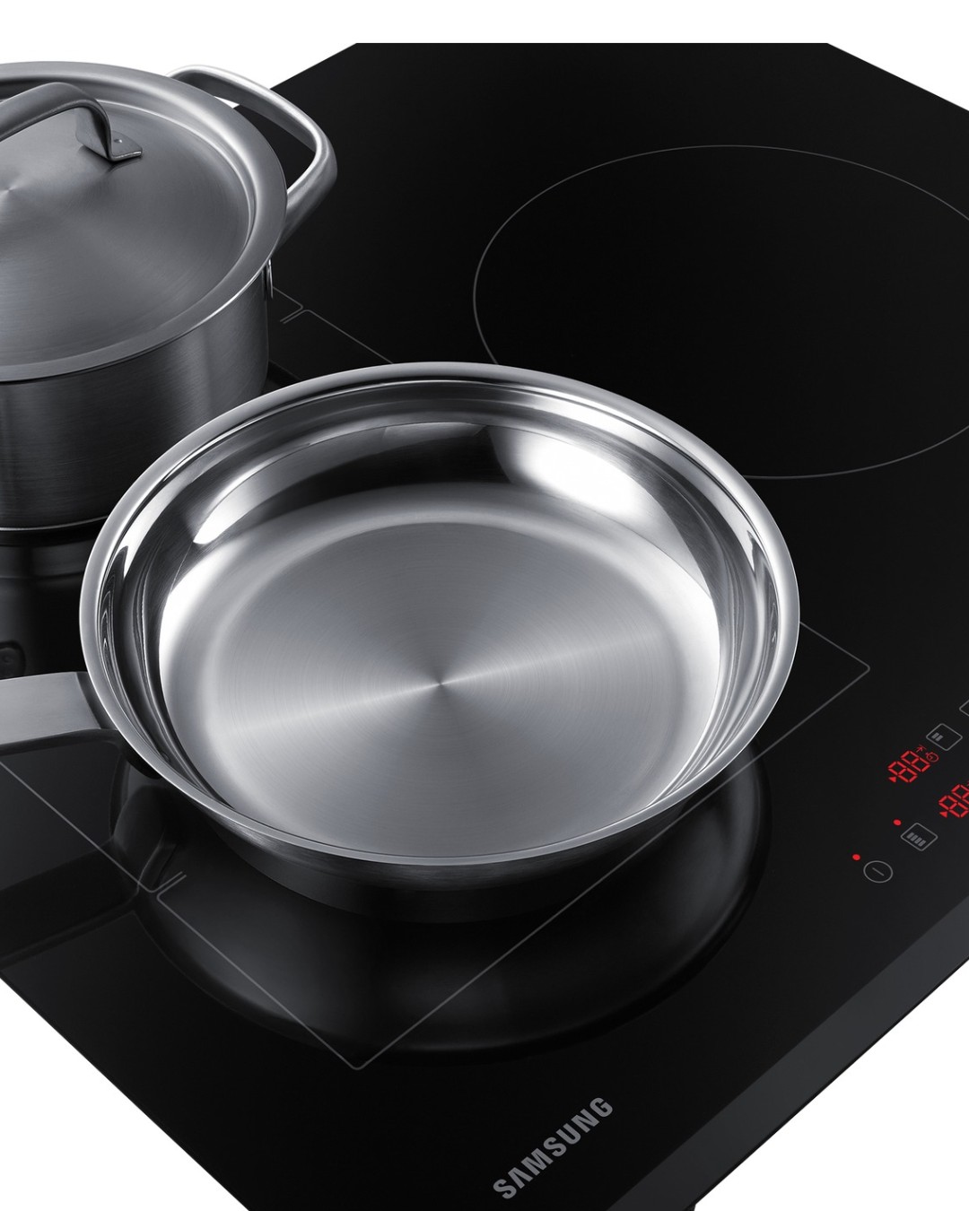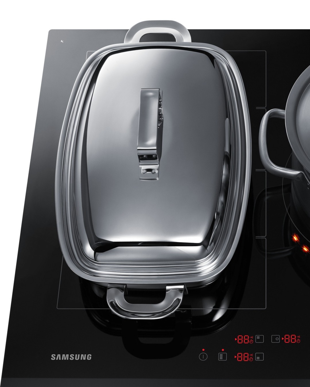 Flex Zone Plus es un área grande y abierta que se divide en 4 zonas para una mayor flexibilidad. Podés acomodar diferentes tamaños de utensilios de cocina para maximizar la eficiencia, ahorrar energía y disfrutar al cocinar comidas grandes.