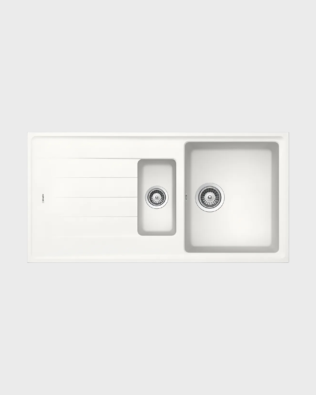 Esta pileta de cocina cuenta con la particularidad de un doble cuenco, permitiendo realizar mas de una tarea a la vez. El cuenco mas pequeño sirve de desagote, de escurridor, así como también para dejar en remojo determinados elementos como verduras, frutas, etc.