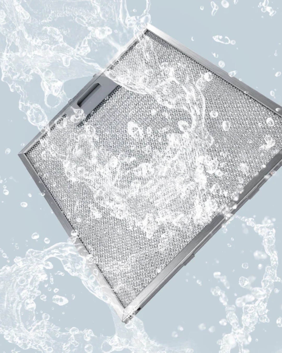 Un filtro de aluminio duradero y fácil de mantener protege el extractor y prolonga la vida útil del motor. Captura el aceite y el polvo antes de que obstruyan el motor o dificulten el flujo de aire. Y sólo necesita limpiarse cada 3-4 semanas, lo que es realmente fácil ya que es lavable y lo suficientemente pequeño como para caber en un lavavajillas.