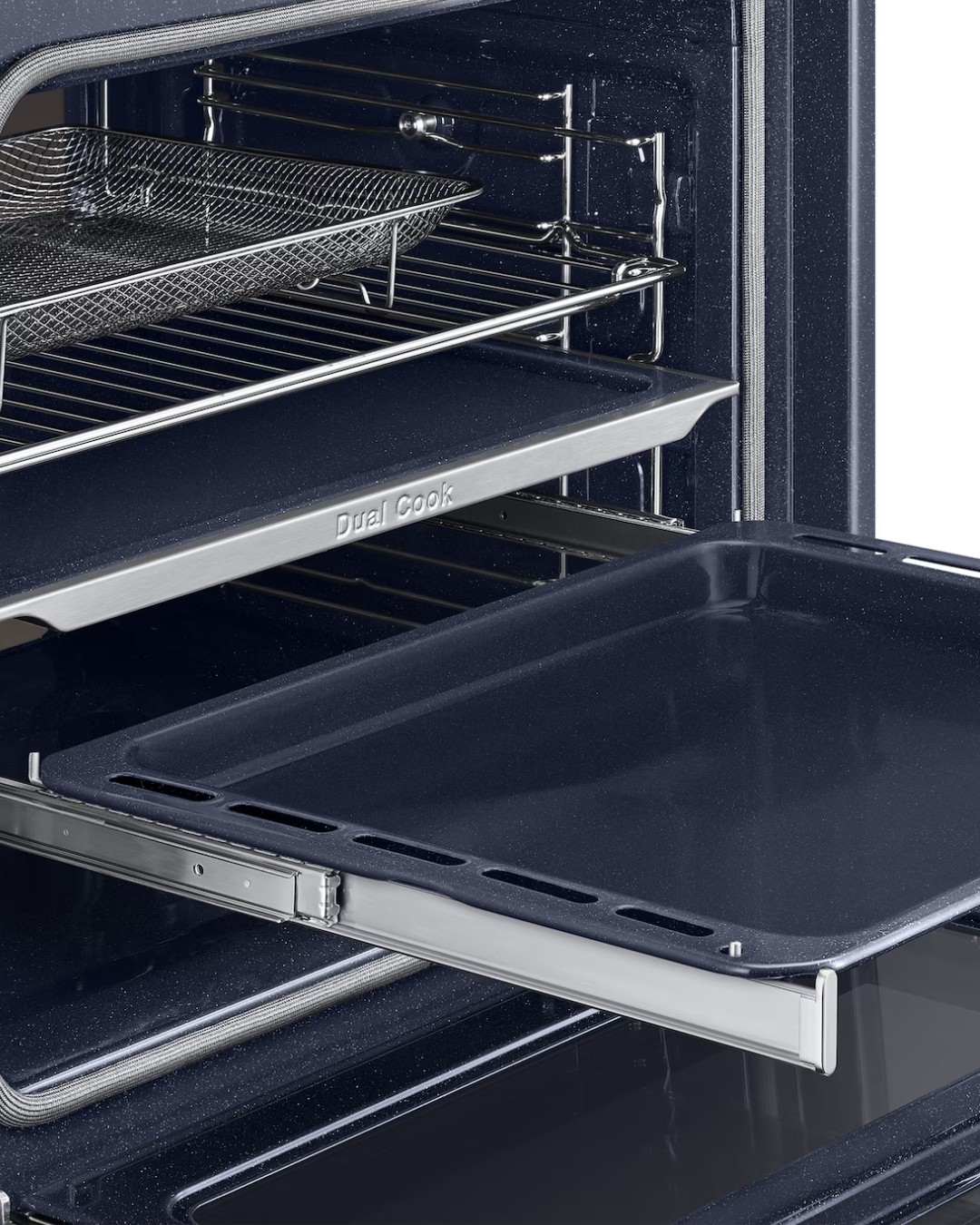 Con Dual Cook podrás elegir cómo cocinar diferentes platos para un mejor resultado, la zona superior e inferior de Dual Cook funcionan de manera independiente o en conjunto. Usá la zona superior para platos más pequeños, ambas zonas para preparar una variedad de platos y lograr comidas sabrosas, o todo el horno para platos grandes.