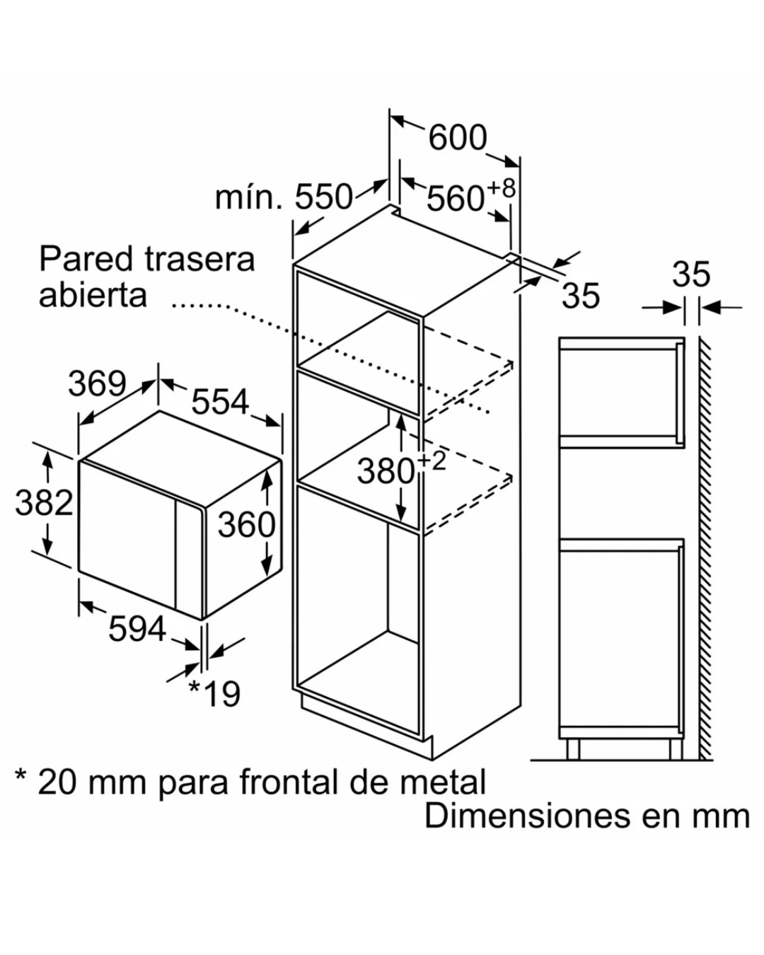 Serie 6 Microondas integrable con grill 59 x 38 cm Acero inoxidable