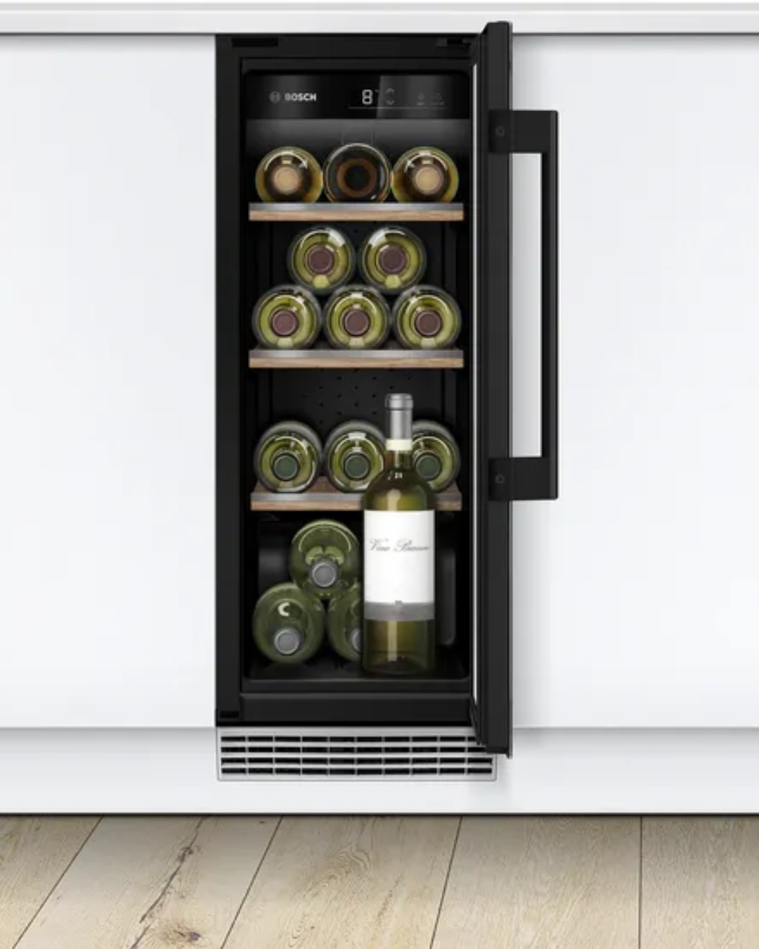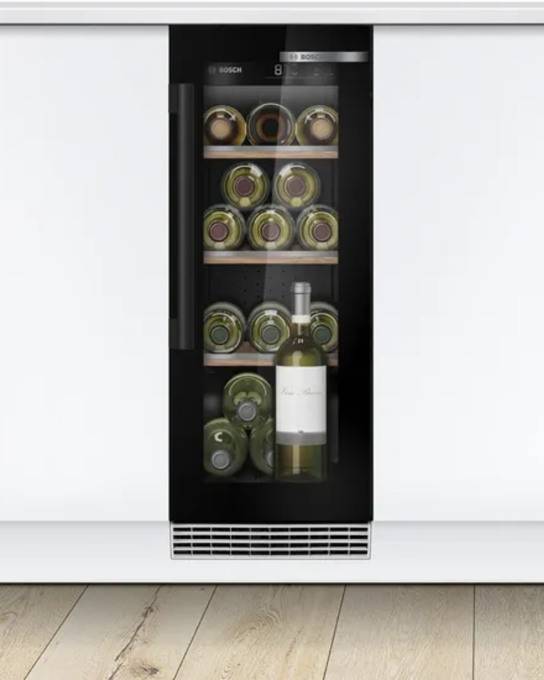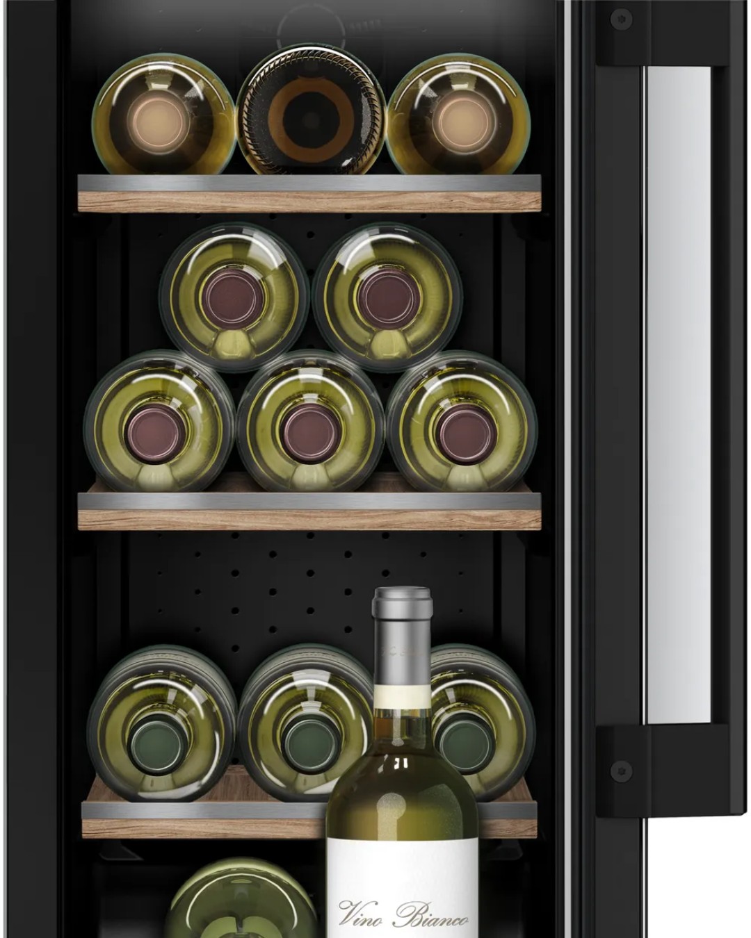 Tu vinoteca integrable, con regulación electrónica de temperatura, +5 a +20°C, y filtro de protección ultravioleta, para la mayor conservación de tus mejores vinos.